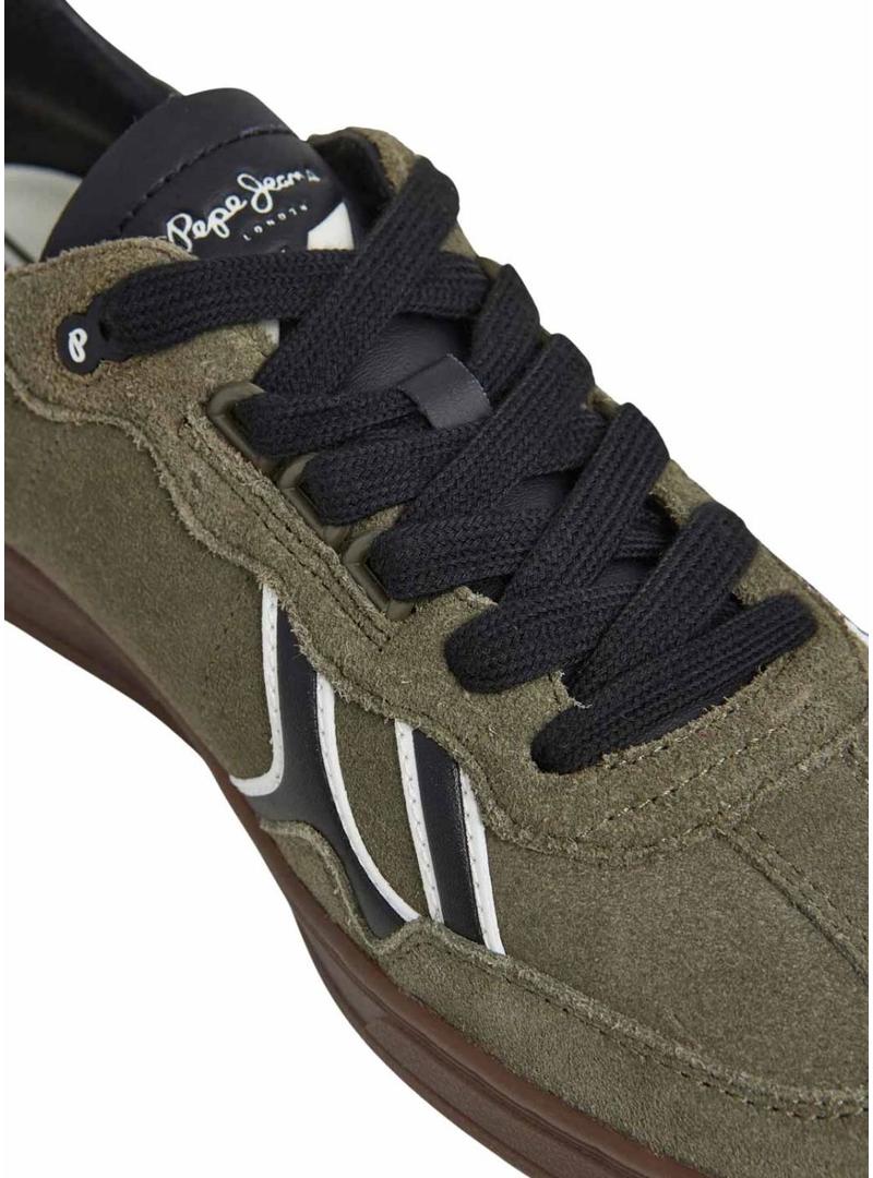 Sapatilhas Pepe Jeans. Cor verde. Parte superior em camurça. Fecho com cordões. Logotipo da Pepe Jeans termosselado nos laterais. Palmilha removível e termoformada. Linhas nos laterais. Calcanhar em contraste com logotipo em relevo 1973. Sola cupsole de borracha em cor caramelo.