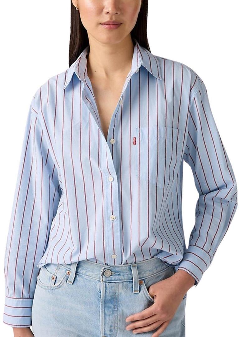 Camisa Levis Harlie Boyfriend listrada azul para mulher.