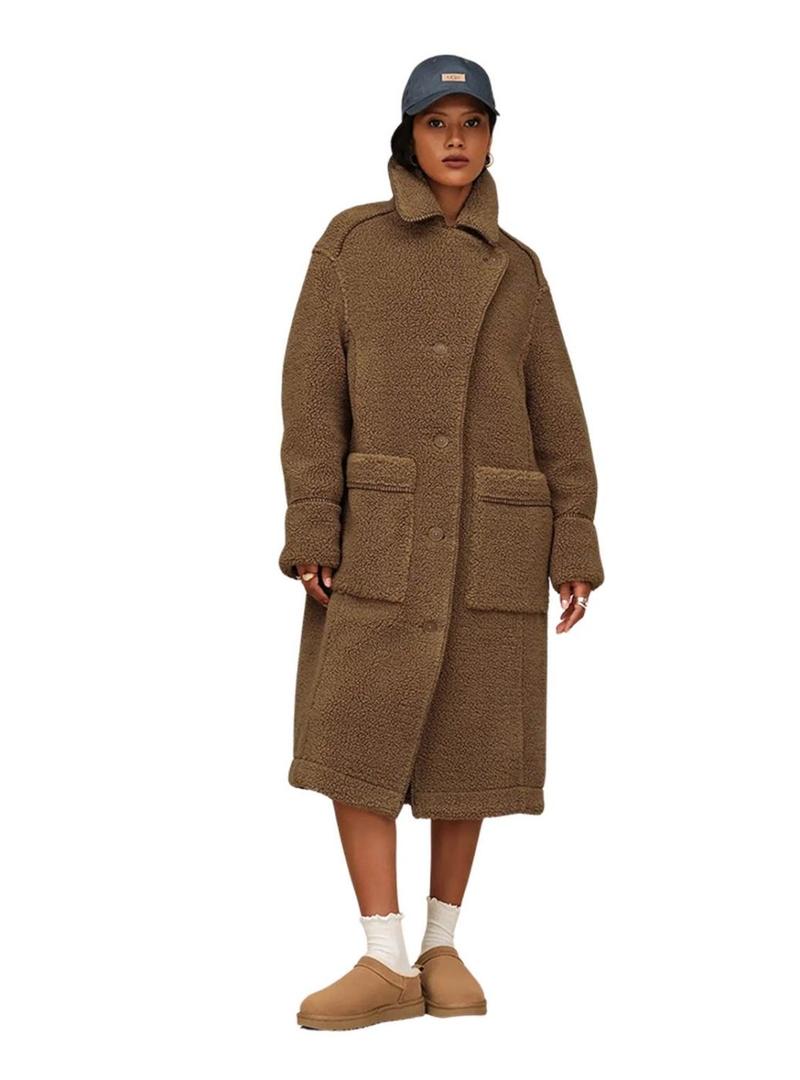 Botas UGG. Modelo Classic Micro. Cor bege. Perfil baixo. Parte superior em camurça genuína tratada hidrofugamente ou resistente à água. Forro de pele de ovelha de 10 mm no cano e 17 mm na parte superior e palmilha para maior conforto e regulação natural da temperatura. Sola leve de EVA SugarSole de cana-de-açúcar. Acabamento em tecido de poliéster reciclado. Logotipo UGG na etiqueta tecida na palmilha e na etiqueta de pele gravada no calcanhar.