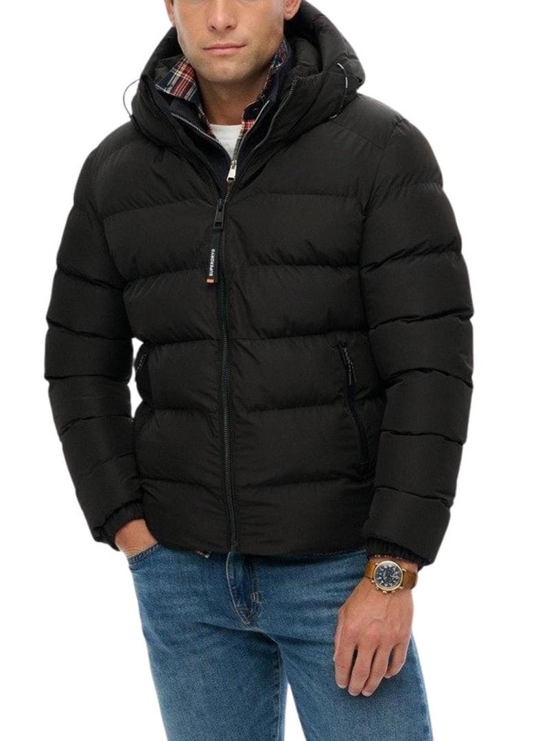 Casaco acolchoado Superdry Hooded Sports Puffer preto para homem.