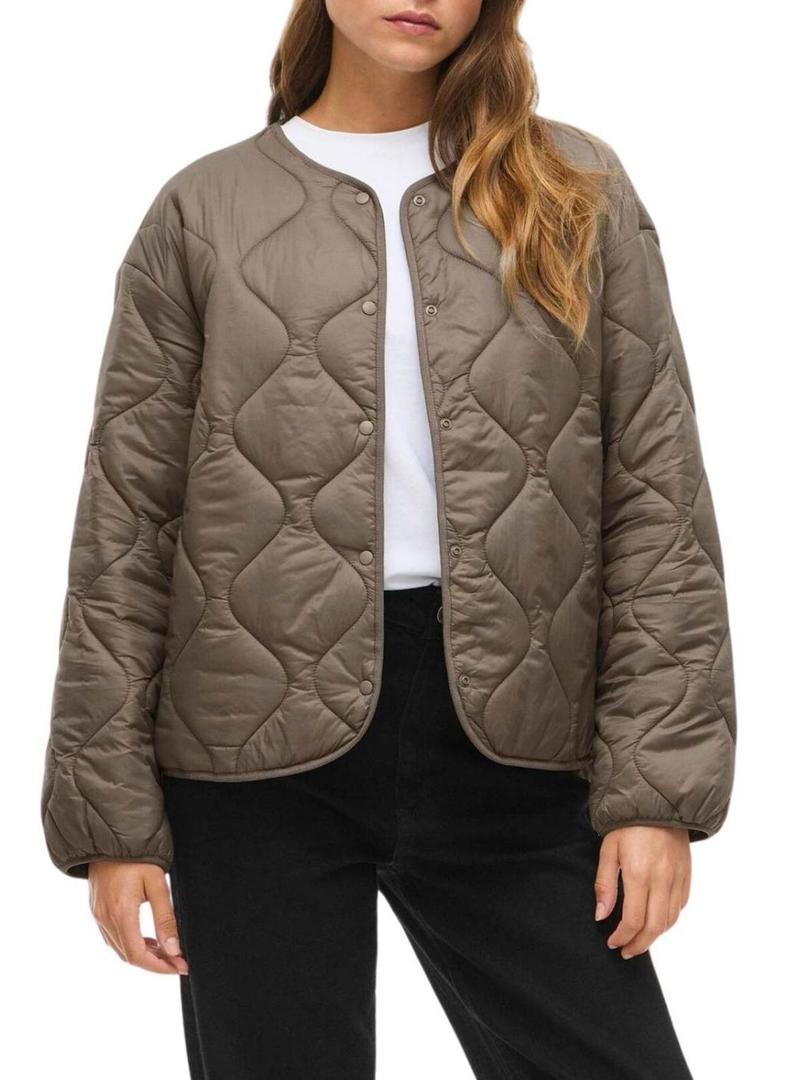 Jaqueta acolchoada da Vila. Modelo Vidune. Cor Cinza. Gola redonda. Fecho frontal com botões de pressão. Bolsos laterais. Enchimento leve. Corte regular. Ombros levemente caídos.