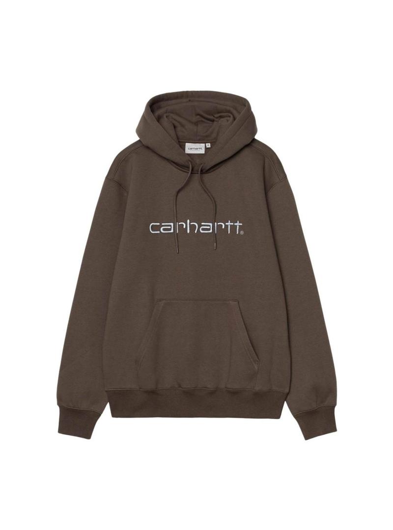 Moletom Carhartt com logotipo e capuz marrom para homem.