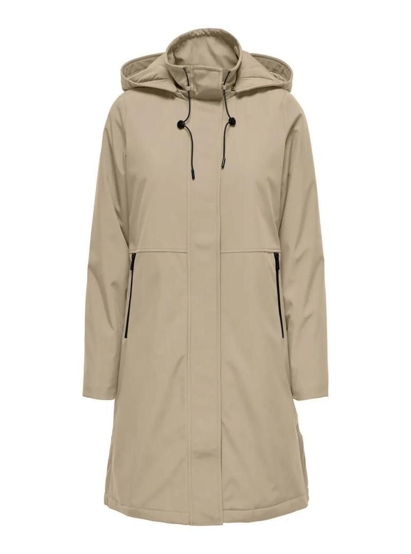 Parka Only. Modelo Kara. Cor bege. Capuz integrado. Manga comprida. Fecho frontal com zíper. Bolsos laterais com zíper. Comprimento total. Peça acolchoada com enchimento sintético de alta qualidade. Cordão ajustável na cintura.