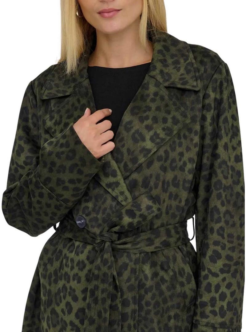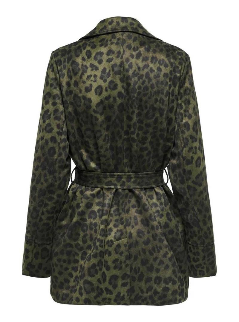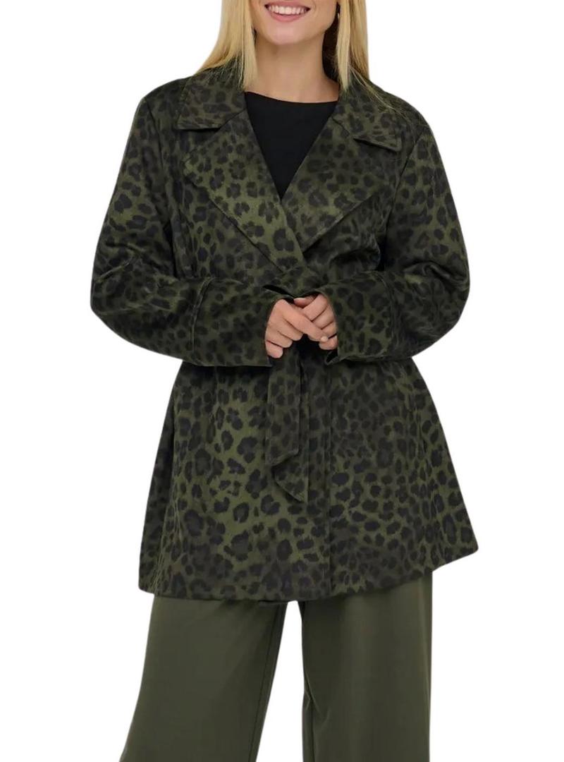 Jaqueta Only. Modelo Moon. Cor verde. Estampa de animal print. Lapelas. Cinto de autoamarrado removível. Fechamento cruzado. Ajuste regular.