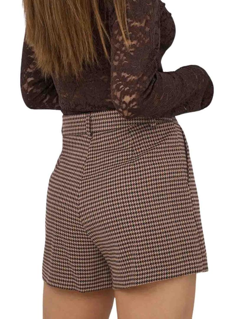 Saia-calça Only. Modelo Lettie. Cor marrom. Estampa geométrica estilo pé de galinha. Bolsos laterais. Cintura alta. Fecho lateral.
