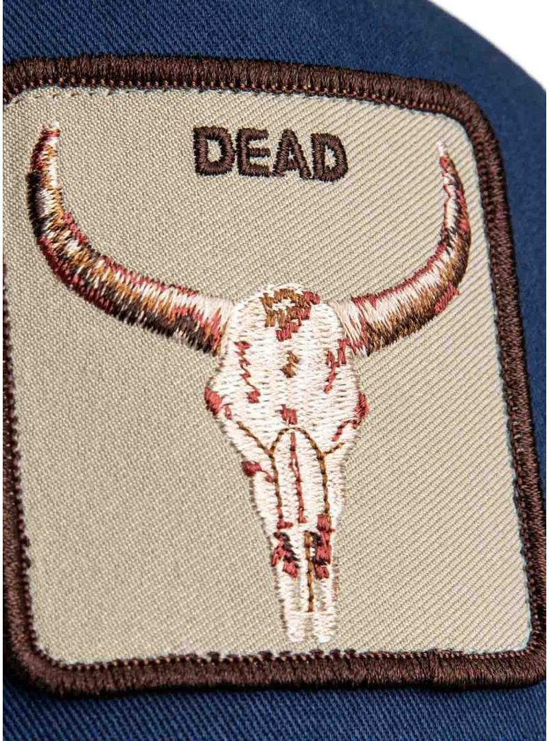 Boné Goorin Bros. Coleção Two Tone Skull. Modelo Morto. Cor azul marinho e azul. Patch com caveira animal bordada na frente. Parte traseira em malha respirável. Frente lisa. Alça traseira ajustável. Etiqueta lateral da marca.