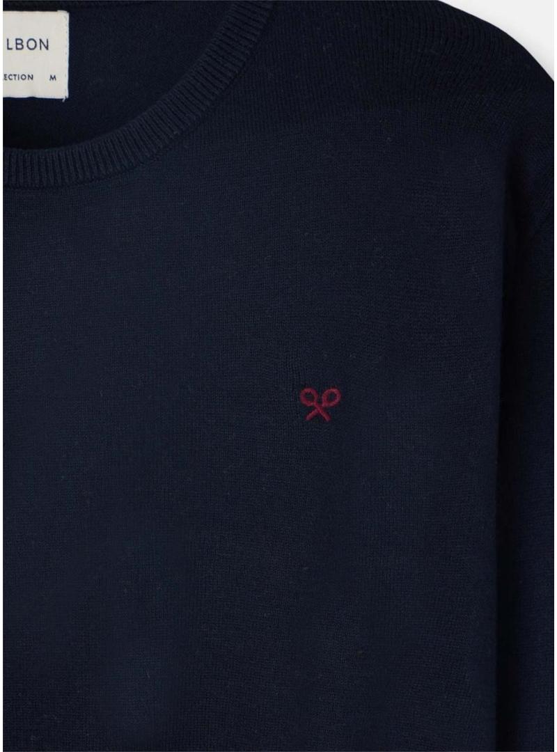 Jersey Silbon. Modelo básico. Cor azul marinho. Gola redonda. Extremidades caneladas. Ajuste regular. Logotipo bordado no peito.