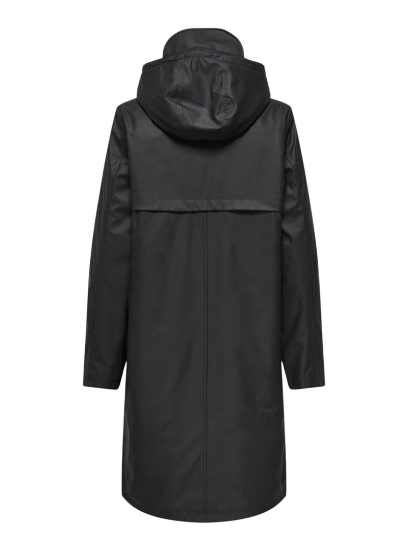 Corta-vento Only. Modelo Onlelisa. Cor preta. Gola alta com capuz ajustável. Fecho de botões de pressão. Bolsos frontais com fecho de botão de pressão. Comprimento: médio.