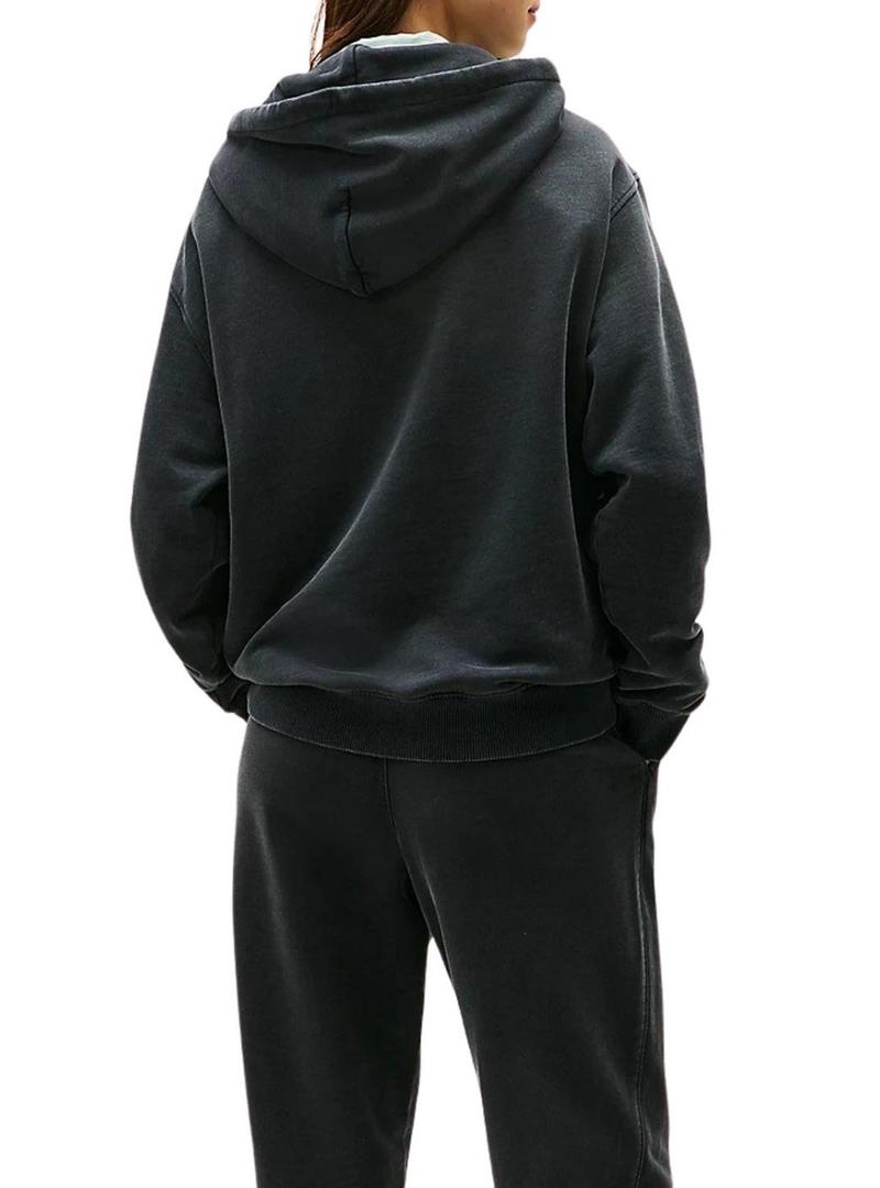 Moletom Tommy Jeans. Modelo Crest Flag. Cor preta. Efeito lavado. Capuz ajustável com cordão. Bolso frontal estilo canguru. Logotipo no peito. Ajuste levemente folgado. Extremidades caneladas.