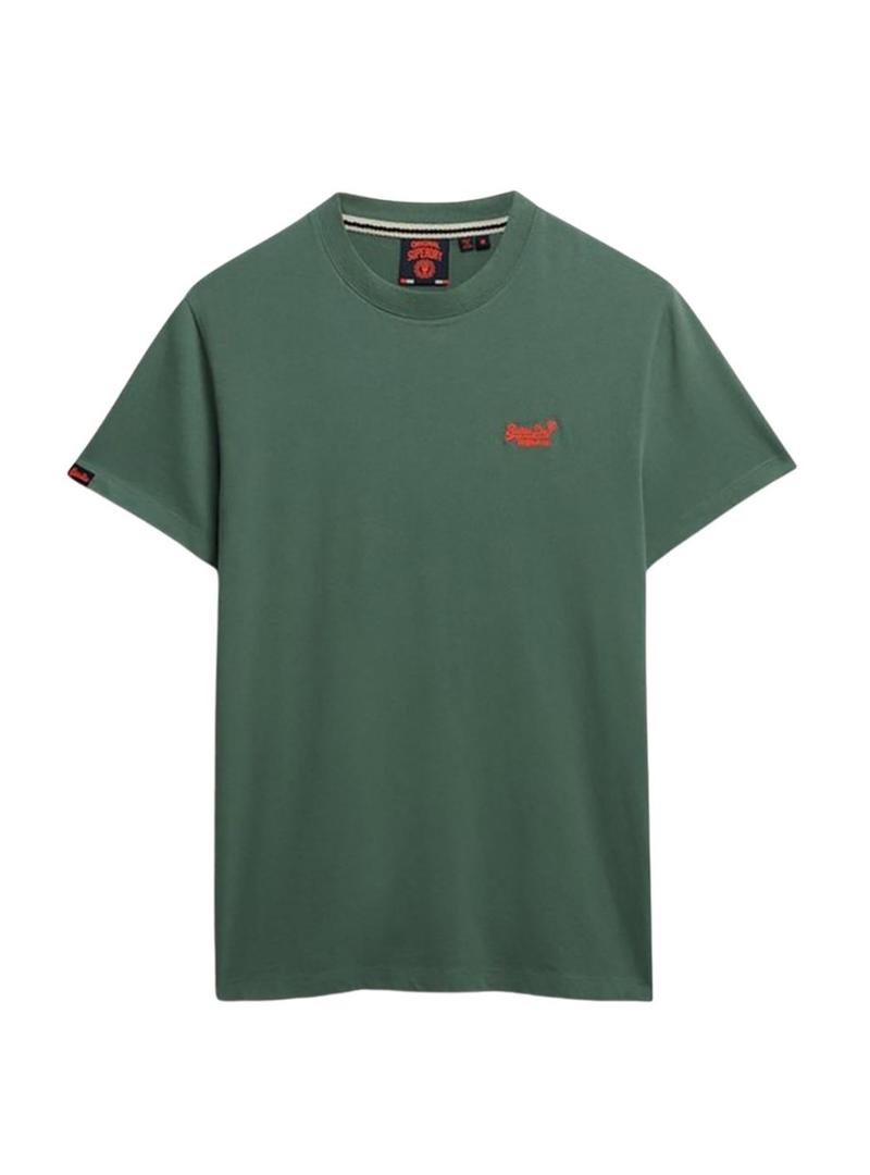 Camiseta Superdry. Modelo Essential Logo. Cor verde. Gola redonda. Manga curta. Corte regular. Logotipo bordado em contraste. Etiqueta distintiva com logotipo.
