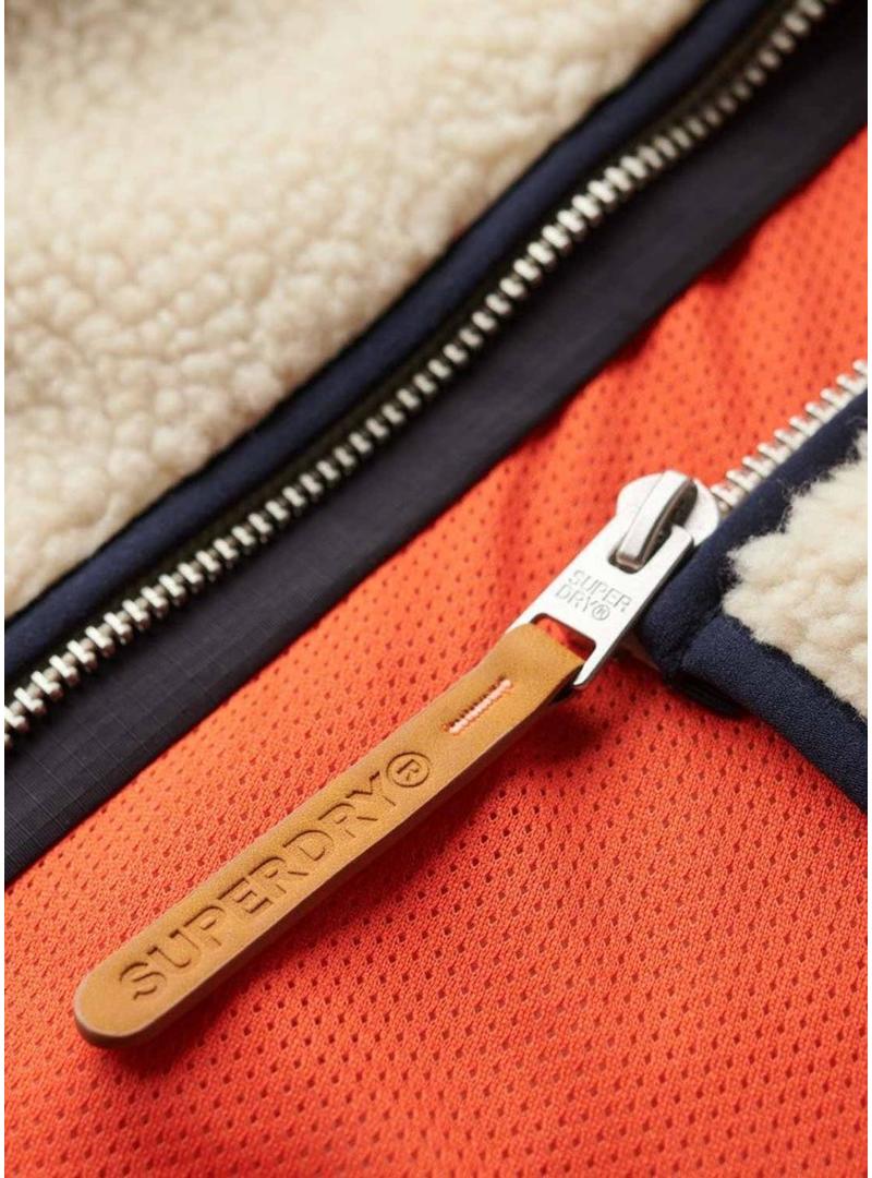 Polar Superdry. Modelo Vintage Retro Full Zip. Gola alta. Fechamento com zíper com puxador. Cor bege. Bolso tipo patch no peito com fechamento de zíper. Dois bolsos laterais com fechamento de zíper. Ajuste regular. Tecido extra macio. Interior forrado. Patches da marca no bolso do peito. Cintura e punhos reforçados. Tecido extra macio.