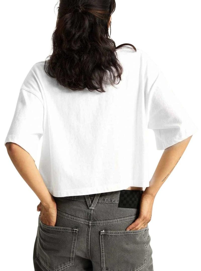 Camiseta Vans. Modelo Rhythm. Cor branca. Gola redonda. Manga curta. Ajuste folgado. Fotografia Skate estampada na frente em preto e branco. Corte cropped.