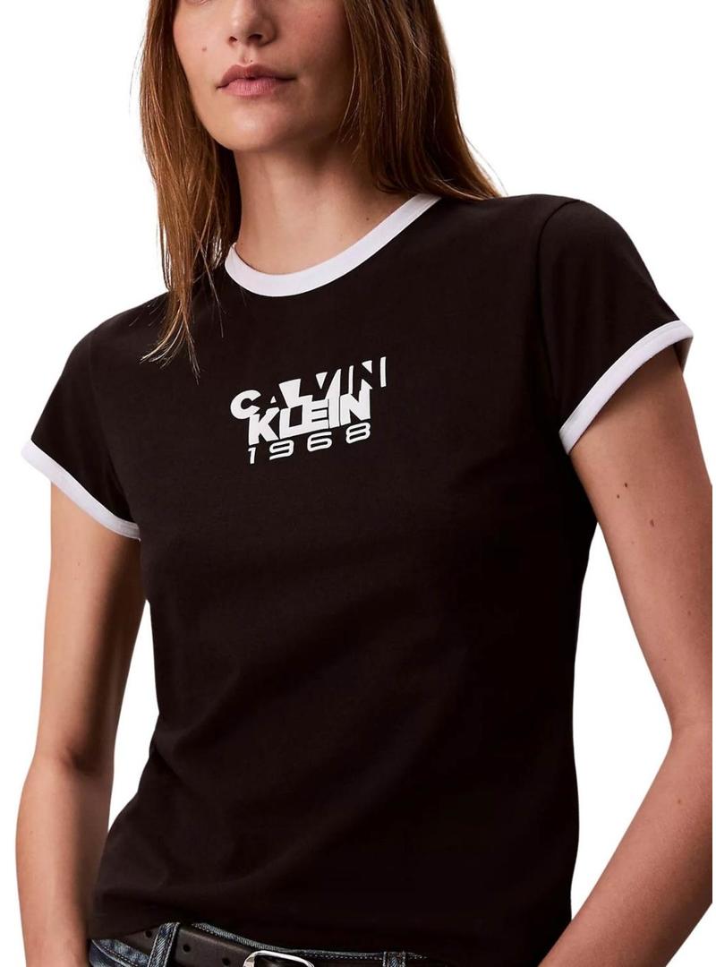 Camiseta Calvin Klein 1968 Graphic Baby preta para mulher.