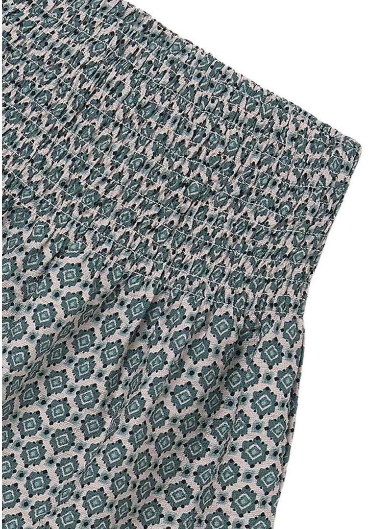 Saia Mayoral. Modelo com estampa geométrica. Cor azul. Corte mini. Corte volumoso. Cintura com elástico smocked.