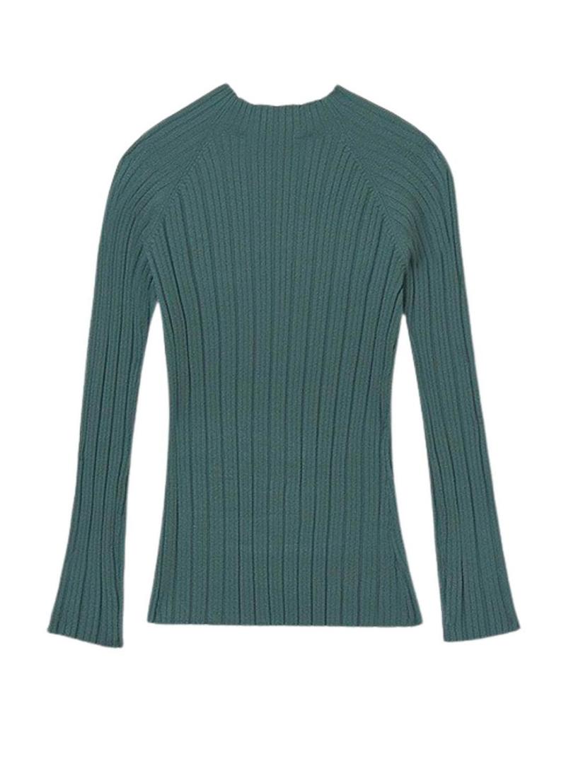 Camisa Mayoral. Modelo Tricot. Cor verde. Manga comprida. Gola semi-rulê. Tecido de ponto canelado. Corte justo.