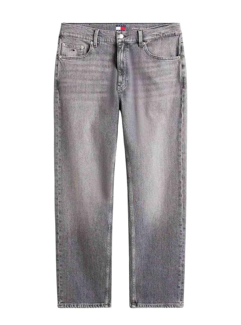 Calça jeans Tommy Jeans. Modelo Sonny. Cor cinza. Efeito lavado. Cintura média com corte regular e perna levemente cônica. Feitos em denim de algodão elástico com efeito desbotado nas coxas, joelhos e parte de trás. Fecho de zíper com botão. Estilo de cinco bolsos. Detalhes distintivos da Tommy Jeans, incluindo o logo bordado nos bolsos traseiros.