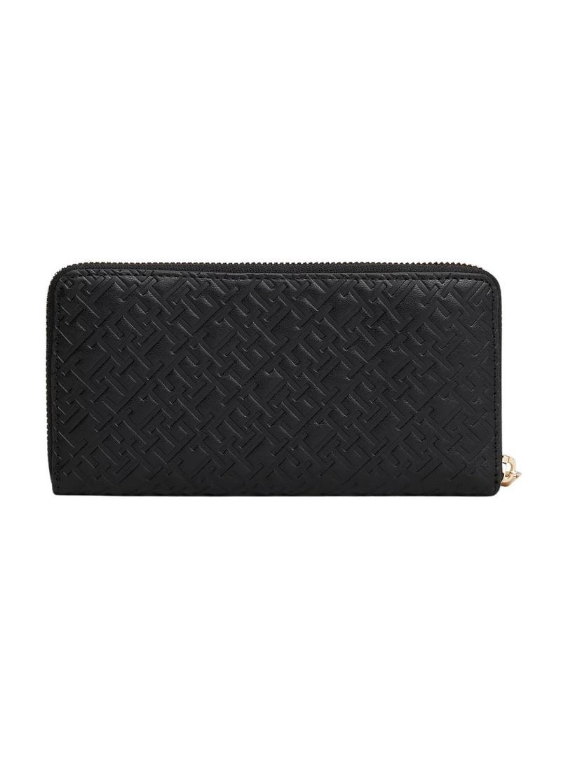 Carteira Tommy Hilfiger. Modelo Monograma. Cor preta. Design texturizado com logotipos. Fecho de zíper perimetral e vários compartimentos interiores para moedas, cartões e notas. Inclui caixa de presente. Emblema do monograma TH na parte da frente e detalhes distintivos da Tommy Hilfiger. Medidas: 20 x 2,5 x 10,5 cm.