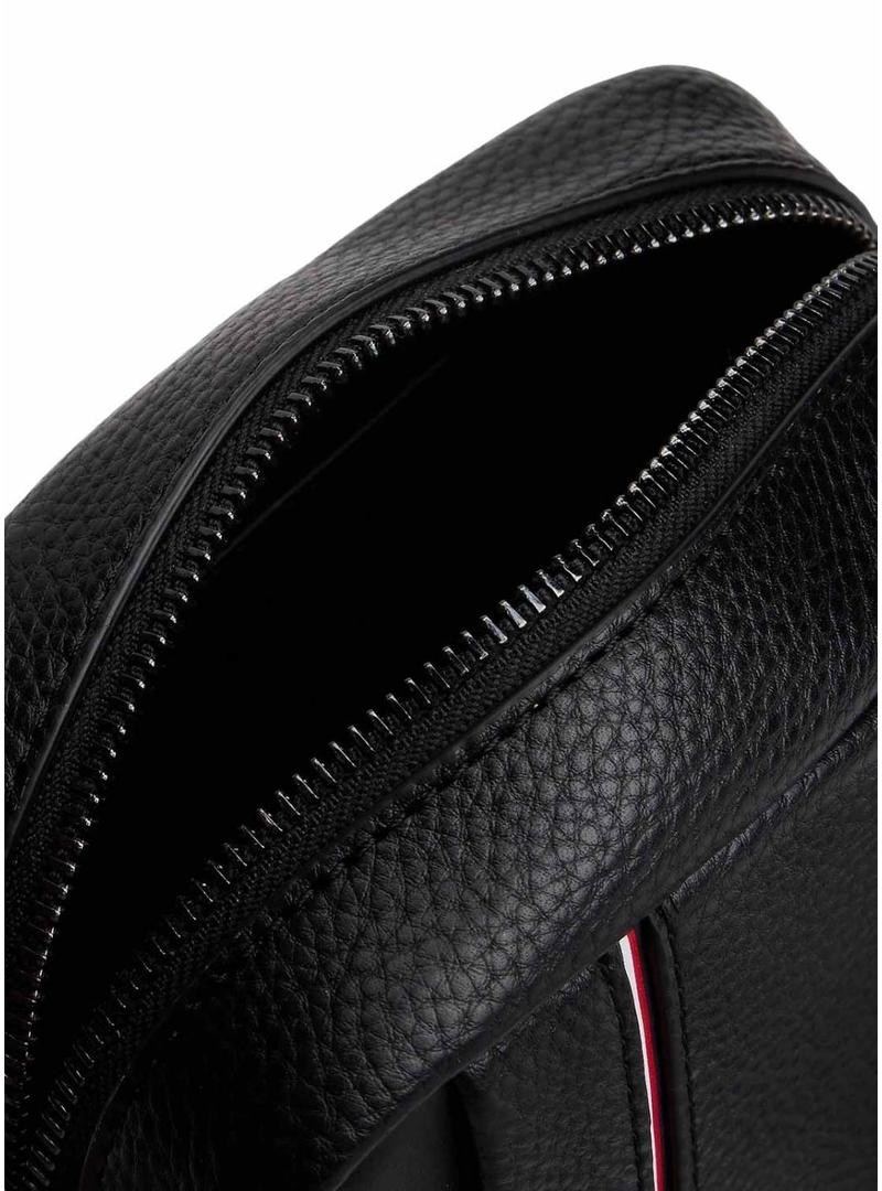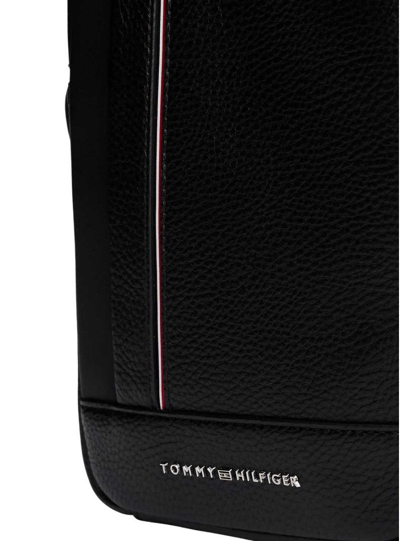 Bolsa Tommy Hilfiger. Modelo Central. Cor preta. Acabamento granulado refinado. Detalhes distintivos. Fecho de correr e alça ajustável. Compartimento principal com fita distintiva na parte da frente. Logo metálico da Tommy Hilfiger na frente e detalhes característicos da marca. Medidas: 16,5 x 7 x 22 cm. Capacidade: 2,5 L.