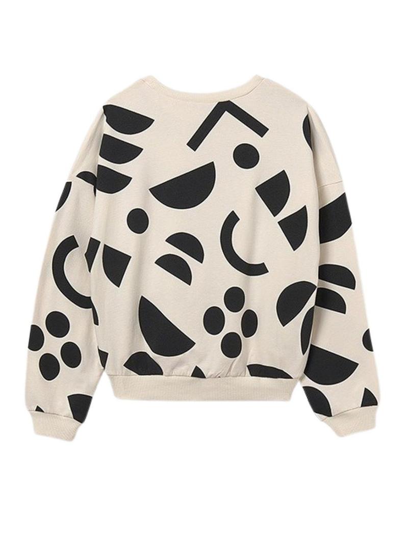 Moletom Mayoral. Modelo com estampa geométrica. Cor preto e branco. Gola redonda. Extremidades caneladas. Ajuste levemente folgado.