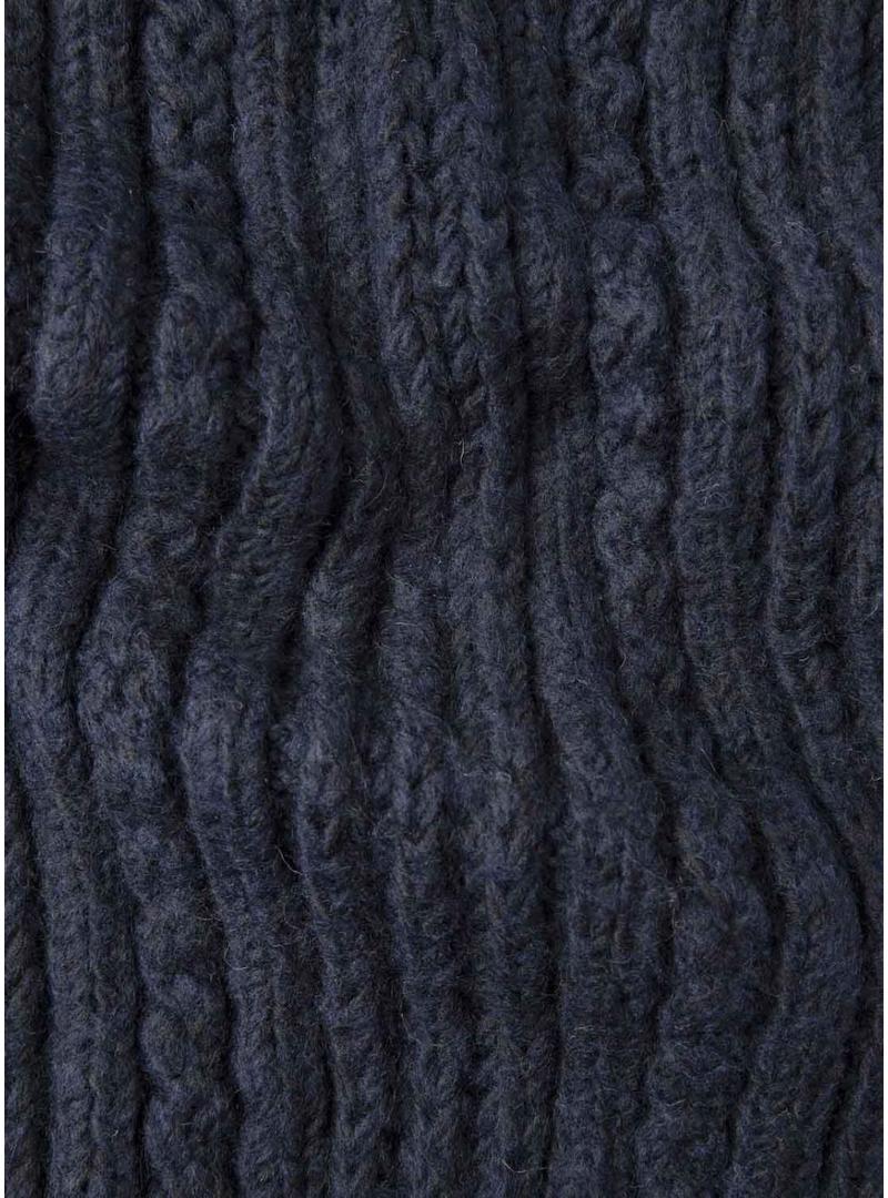 Cachecol Pepe Jeans. Modelo Skyler. Cor azul marinho. Corte retangular. Tecido canelado. Etiqueta da marca na parte inferior.
