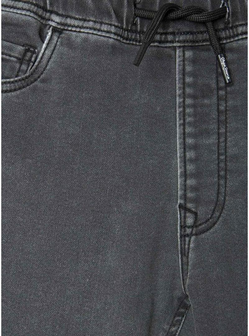 Calças Pepe Jeans. Modelo Archie. Denim escuro. Corte taper com cavalo regular e perna ligeiramente ajustada. Feitas em tecido denim elástico e flexível para maior conforto. Design de cinco bolsos, cintura elástica com cordão ajustável e etiqueta com o logotipo da marca no bolso porta-moedas. Detalhe de costuras decorativas nos bolsos traseiros.
