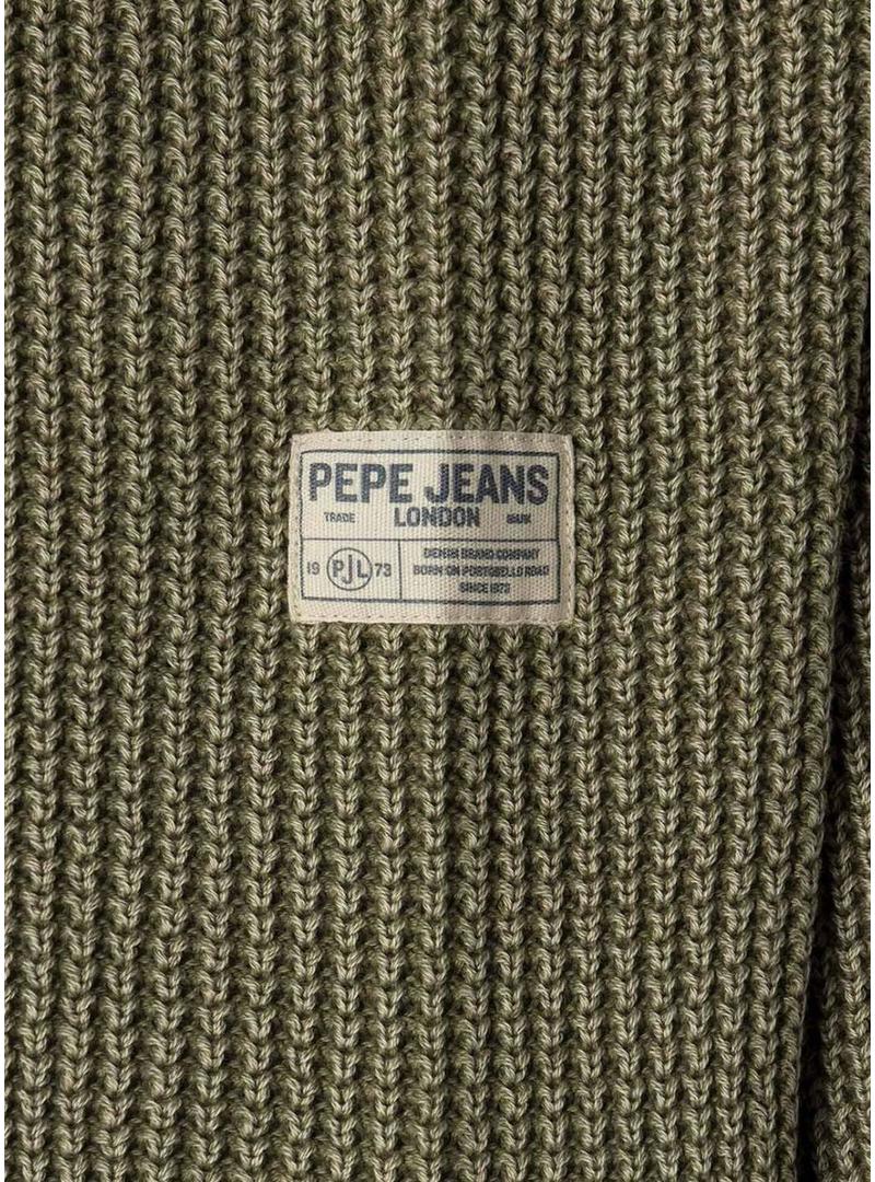 Camisa Pepe Jeans. Modelo Talton. Cor verde. Tecido com estrutura em relevo. Gola redonda. Manga comprida. Ajuste regular. Etiqueta da marca na parte de baixo.