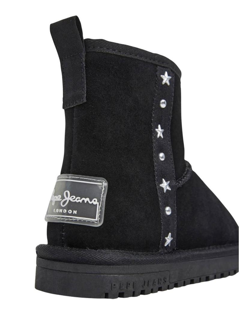 Botas Pepe Jeans. Modelo Diss Rock. Cor preto. Ante bovino com forro interior em efeito de pelo. Fita lateral com tachas metálicas. Patch de borracha translúcido com logo no calcanhar. Sola exterior de borracha termoplástica com desenho antiderrapante. Puxador traseiro.