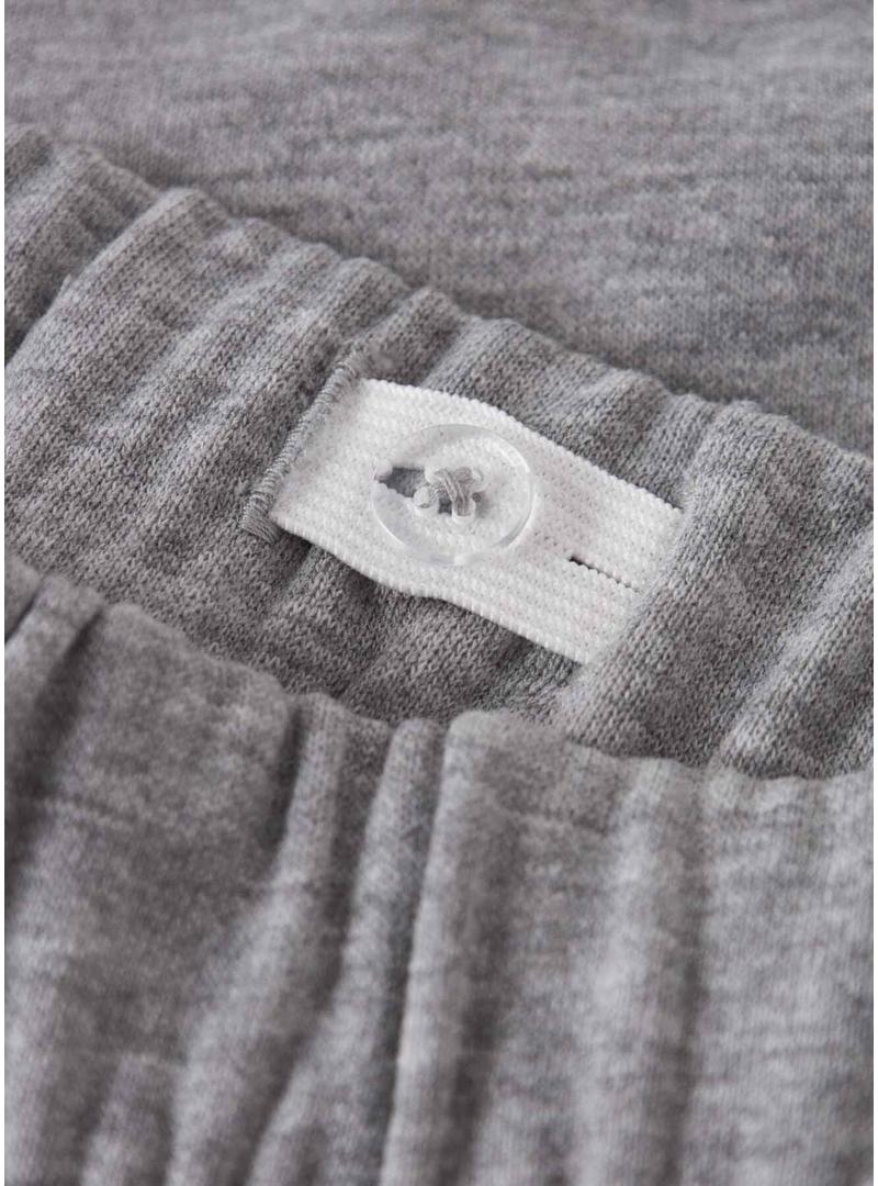 Calça de moletom Name It. Modelo Fofina. Cor cinza mesclado. Estilo jogger. Cintura elástica ajustável com cordão externo e elástico interno. Ilustração minimalista estampada no quadril. Ajuste regular. Barra elástica.