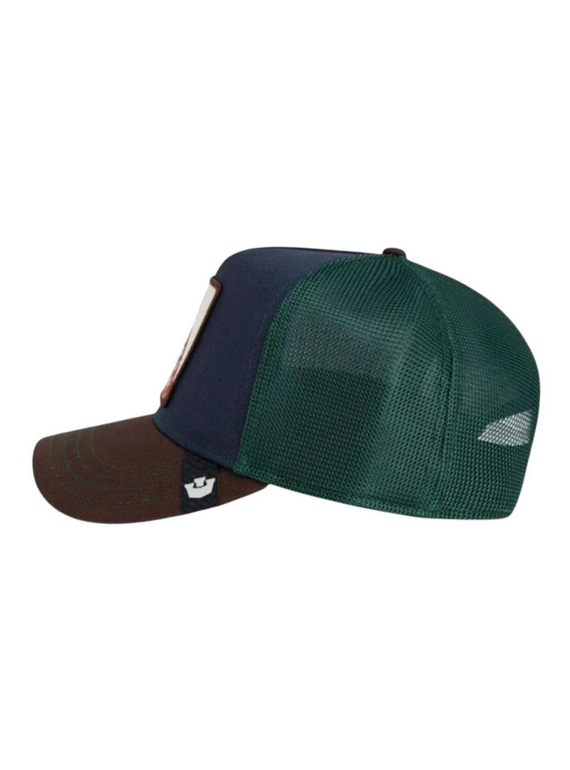 Boné Goorin Bros. Modelo Giraffe. Cor azul marinho. Viseira marrom. Costuras em contraste. Costas em malha verde. Fita ajustável na parte de trás. Etiqueta lateral da marca. Remendo de girafa bordado na frente.