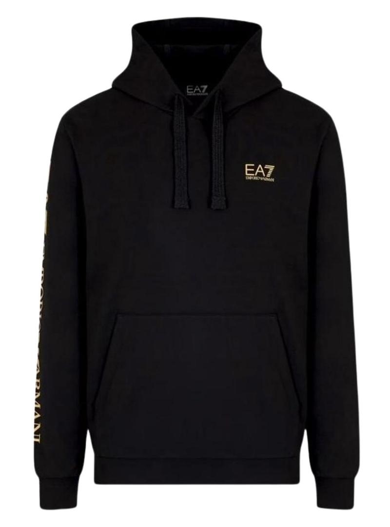 Moletom Emporio Armani EA7 com capuz preto e dourado para homem.