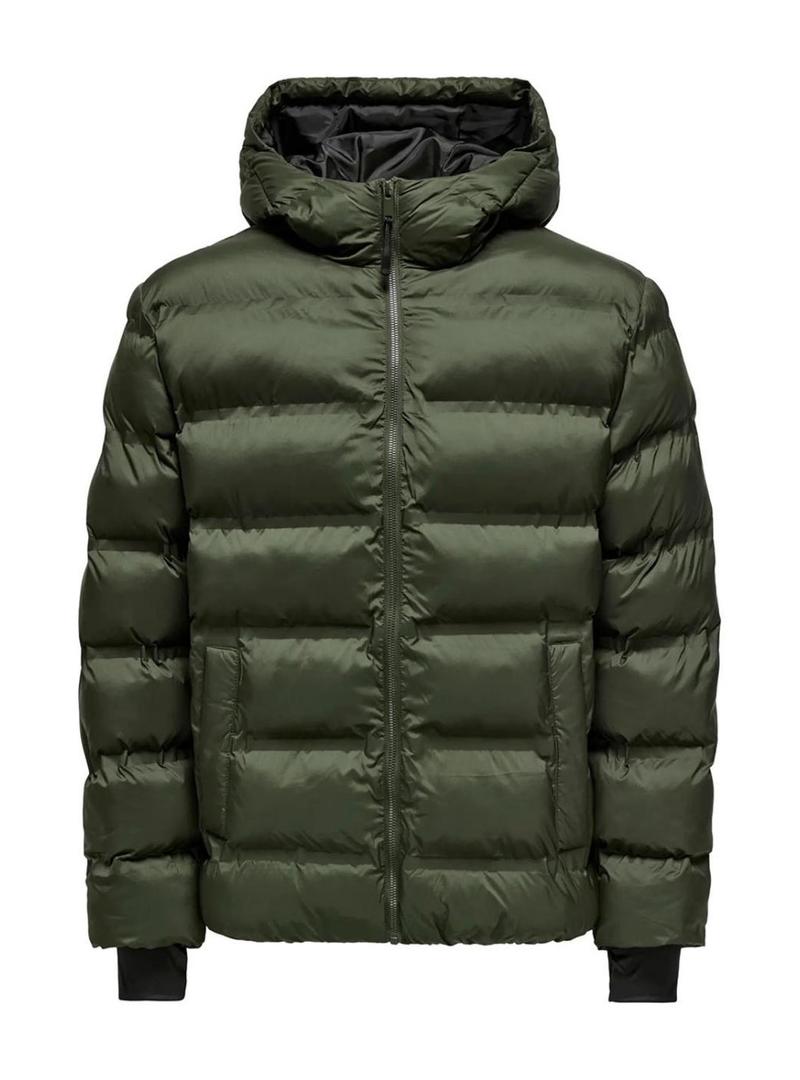 Casaco acolchoado com capuz verde Only and Sons Union para homem.