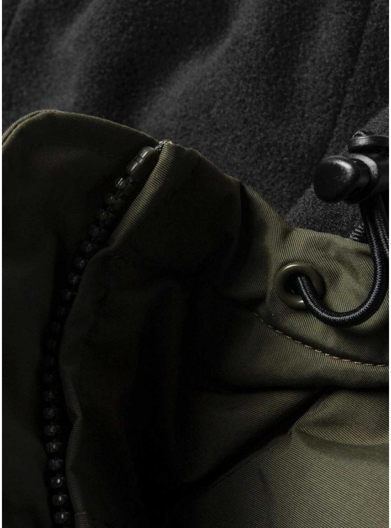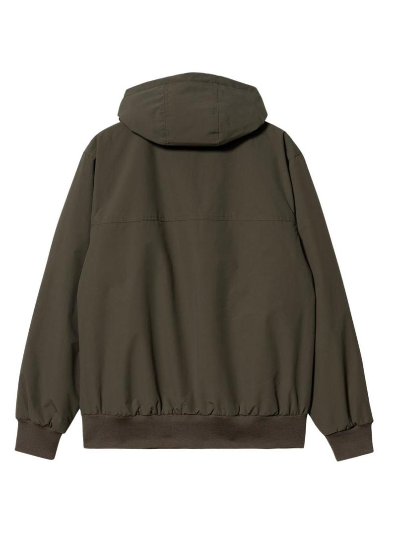 Casaco Carhartt. Cor verde. Tecido de teflon repelente à água. Interior com forro polar. Capuz ajustável. Fecho frontal com zíper. Manga comprida. Acabamentos canelados. Logotipo bordado no peito. O modelo veste o tamanho M.