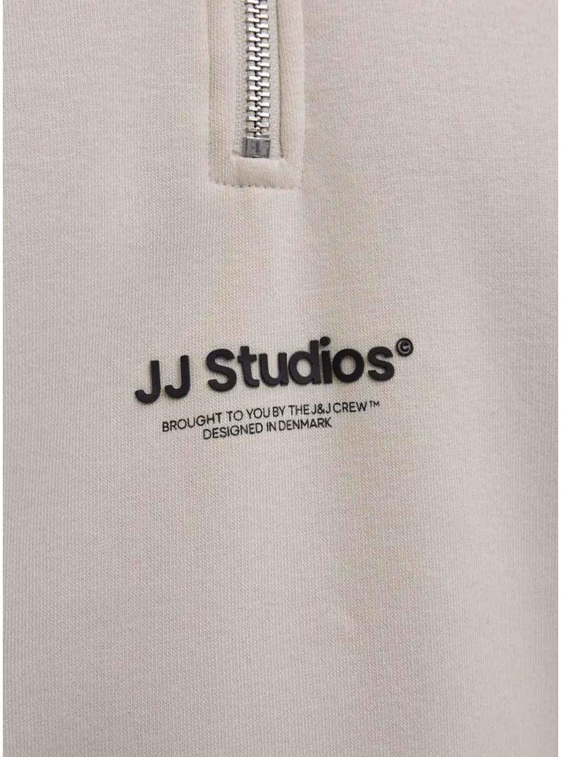 Moletom Jack and Jones. Modelo Soho. Cor bege. Gola alta com zíper. Extremidades caneladas. Ajuste regular. Marca estampada na frente.