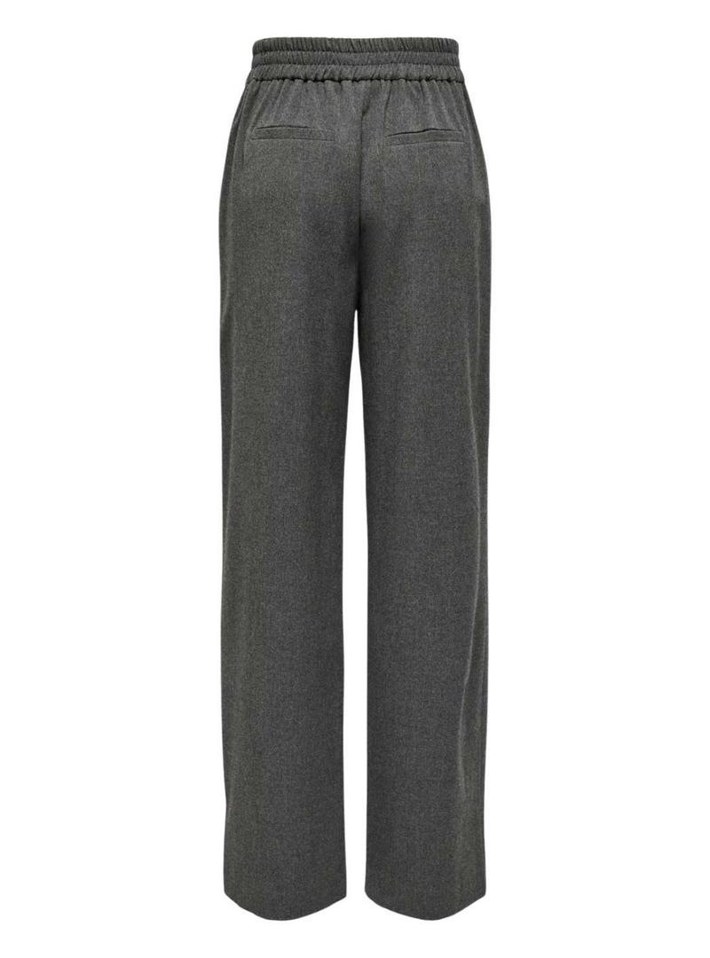 Calças Only. Cor cinza. Tecido macio. Perna larga. Bolsos laterais. Cintura alta. Elástico na parte de trás da cintura. Corte amplo. Bolsos traseiros. O modelo está usando o tamanho S.