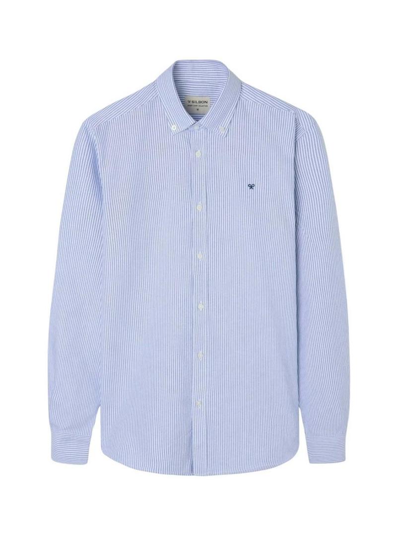 Camisa Silbon esporte oxford raquete listrada azul para homem.