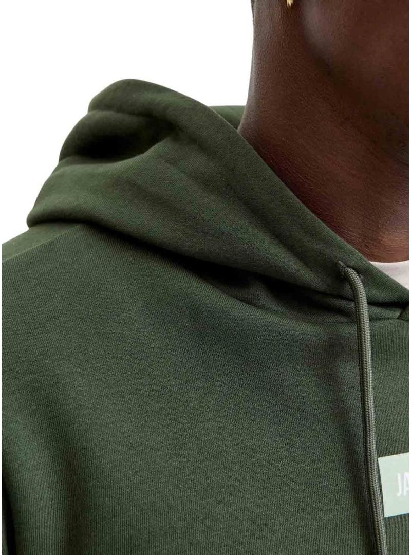Moletom Jack and Jones. Modelo Pan. Cor verde. Extremidades caneladas. Capuz com cordão ajustável. Logotipo da marca estampado no peito. Ajuste regular. Bolso canguru.