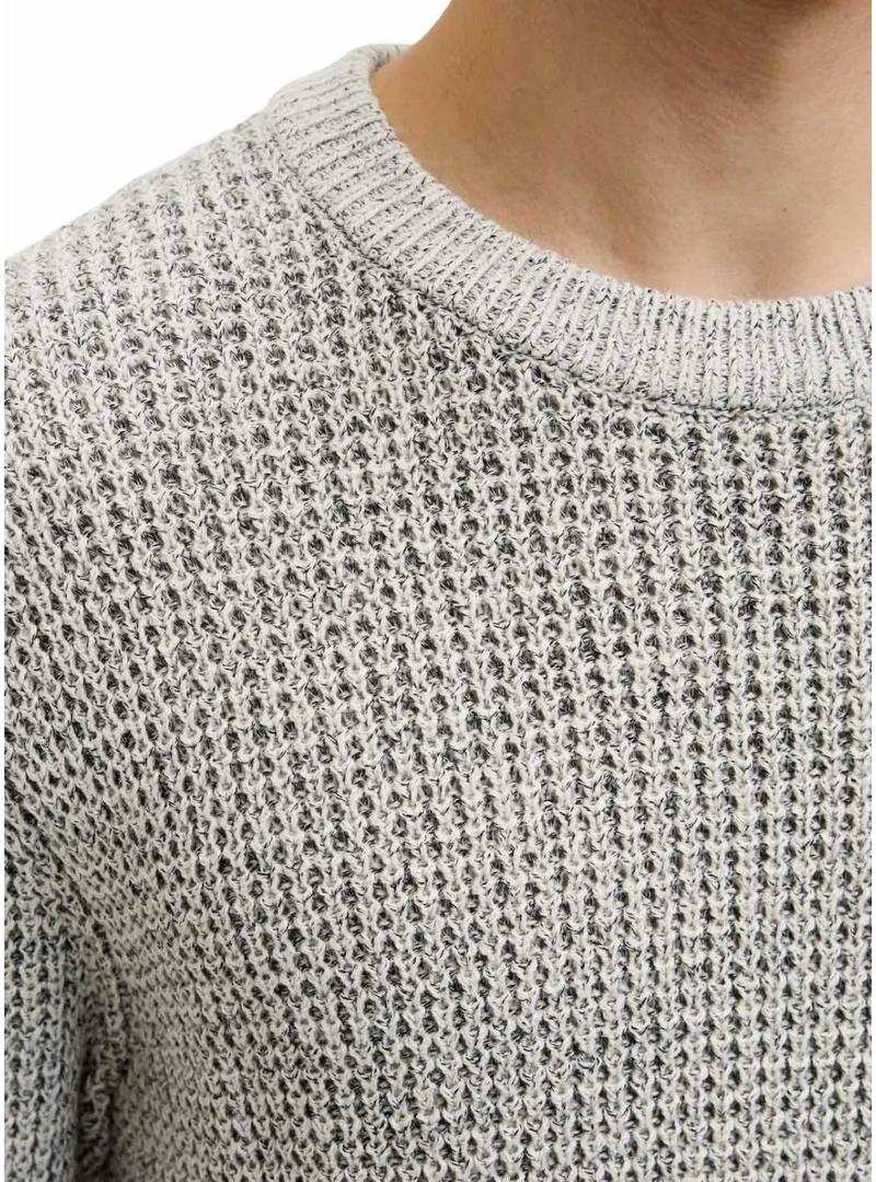 Camisola Jack and Jones. Modelo Global. Cor cinza. Ajuste regular. Gola redonda. Estilo básico. Extremidades caneladas. Tecido com textura em relevo.