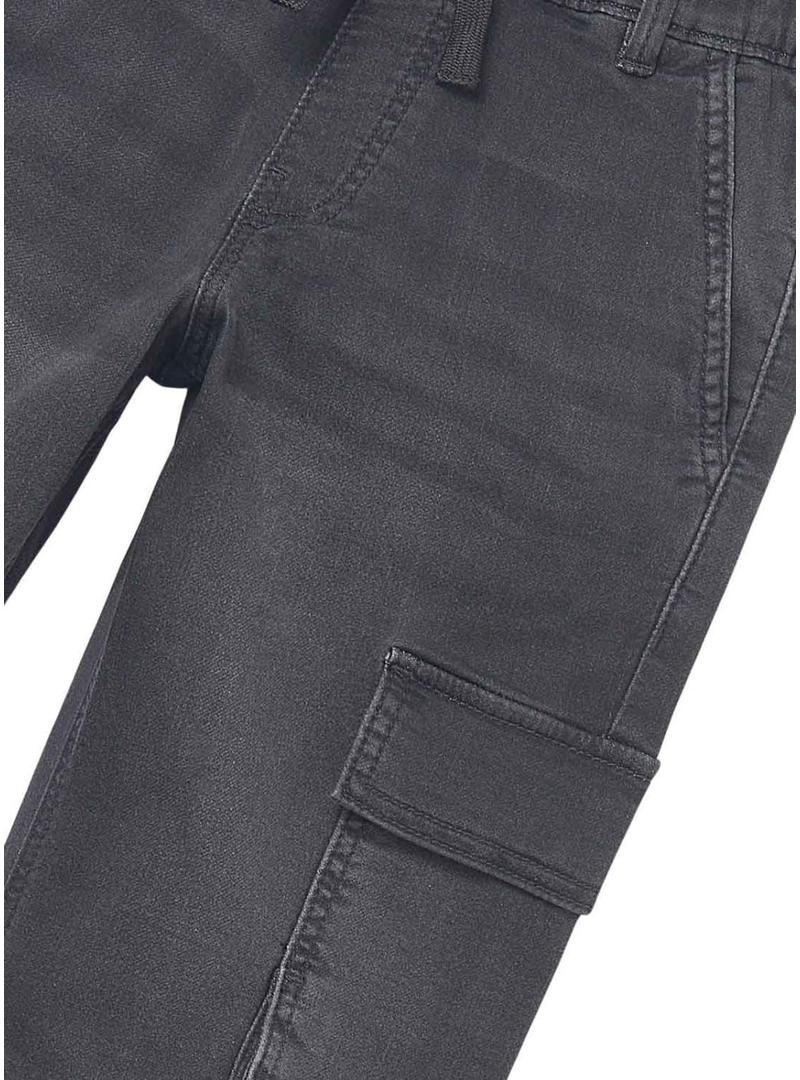 Calças Mayoral. Modelo Cargo. Cor cinza. Efeito desgastado. Cintura elástica com cordão ajustável. Estilo jogger. Bolsos laterais regulares. Bolsos laterais com aba.