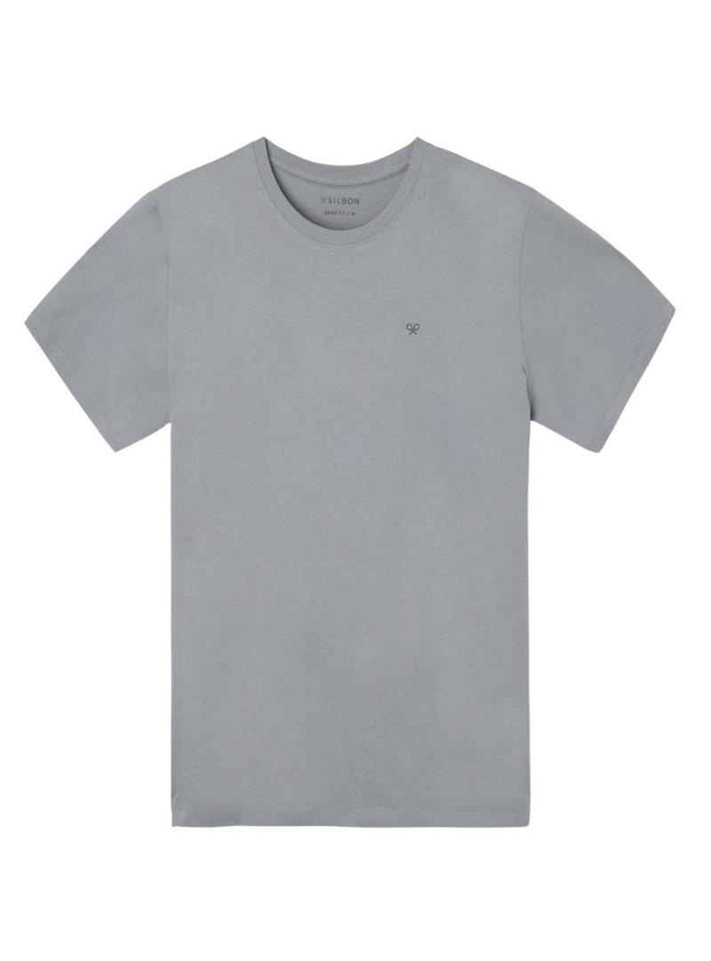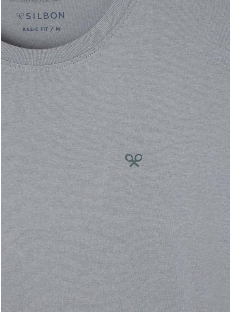 Camiseta Silbon. Estampa étnica nas costas. Cor cinza. Corte regular. Gola redonda. Manga curta. Raquetes em contraste no peito.