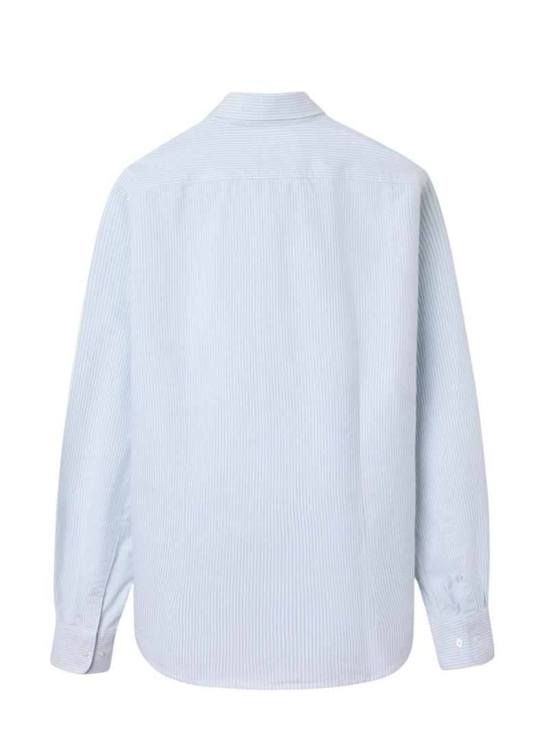 Camisa Silbon. Modelo esportivo. Tecido oxford. Estampa de listras verde. Gola com botões. Fechamento com botões personalizados. Manga longa. Raquetes bordadas no peito. O modelo veste o tamanho M.