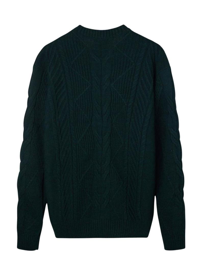 Camisola Silbon. Cor verde. Feito com uma mistura de lã. Malha de tricô trançado. Gola redonda. Manga comprida. Bordado de raquetes no peito. Acabamentos canelados. O modelo veste o tamanho M.