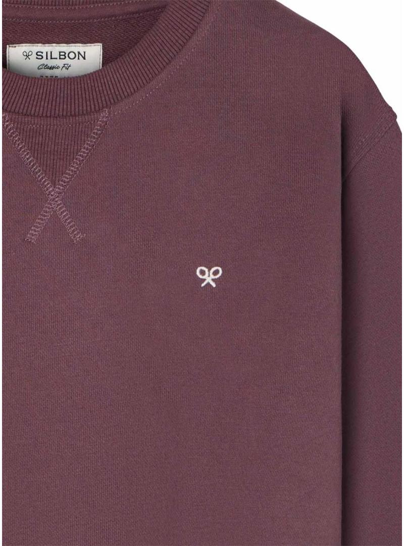 Moletom Silbon. Cor granate. Formato regular. Gola redonda canelada. Manga comprida. Mini raquetes bordadas no peito. O modelo veste o tamanho M.