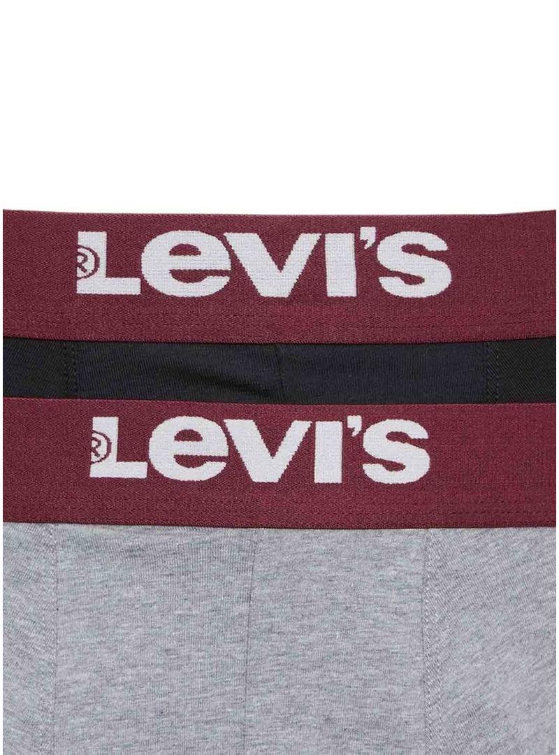 Boxers Levis. Pacote de duas unidades. Modelo Basic. Cintura baixa elástica. Logotipo na cintura em intarsia. Corte ajustado. Cores: cinza e preto. Cintura elástica colorida em contraste.