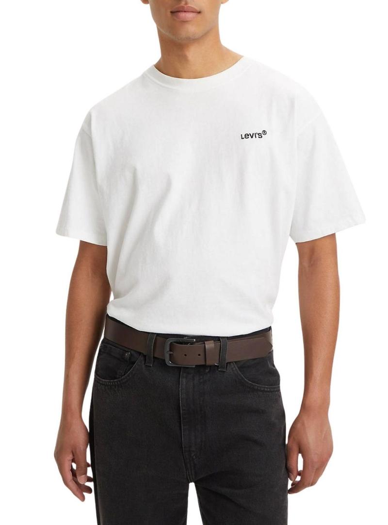 Cinto Levi's. Modelo fivela metálica Seine. Cor marrom. Costura resistente. Couro genuíno. Fivela em cor de chumbo.