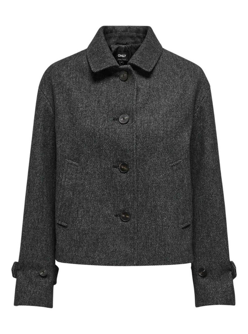 Jaqueta Only. Modelo Lasta. Cor cinza jaspeado. Fechamento com botões. Corte reto. Comprimento na altura dos quadris. Bolsos laterais. Tecido de lã.