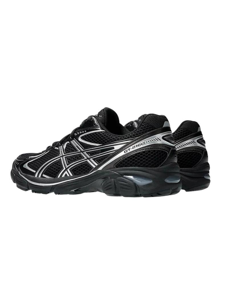 New Balance. Modelo GT 2160. Cor preta. Detalhes prateados. Fecho com cordões. Presta homenagem ao design técnico da série GT-2000 do início dos anos 2010. Esta versão mantém o design técnico do tênis e preserva características-chave como o antepé esculpido de forma ondulada. Entressola segmentada e inserções de tecnologia GEL. Essa combinação cria uma estética industrial complementada por um amortecimento avançado.