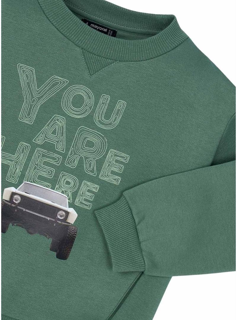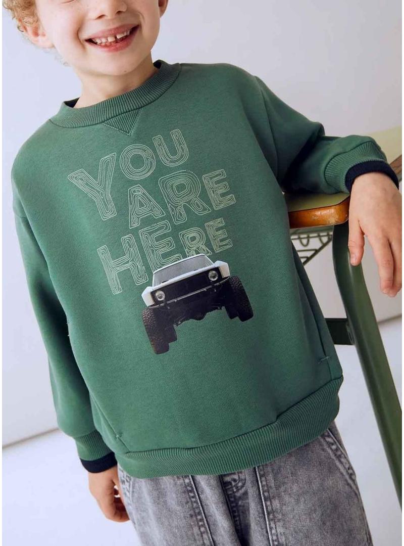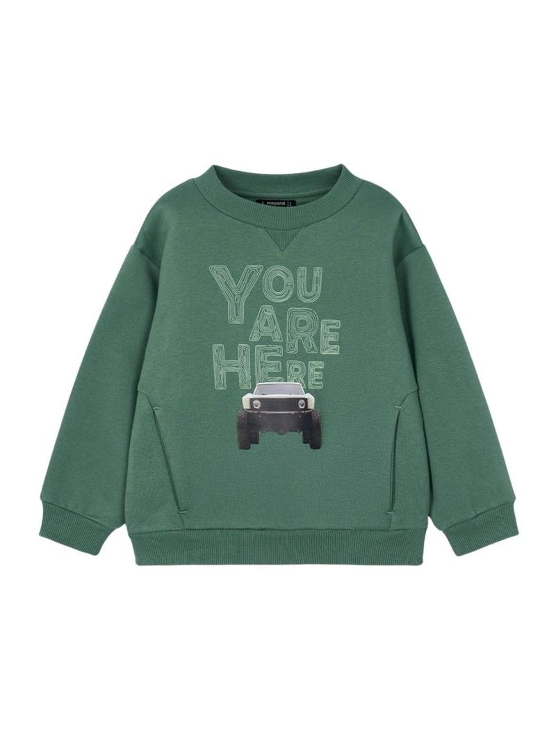 Moletom Mayoral com estampa de carro verde para menino.