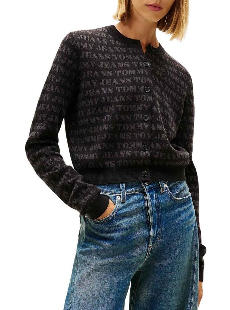Jaqueta de malha Tommy Jeans Spellout preta para mulher.