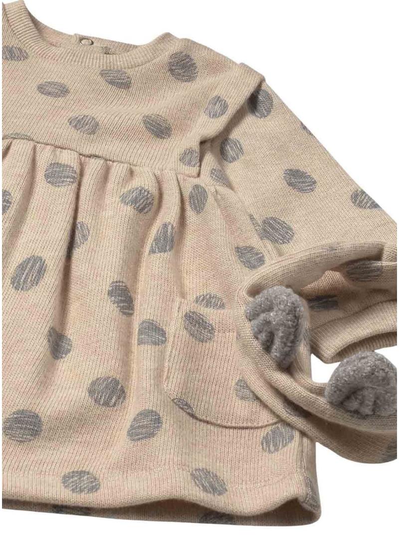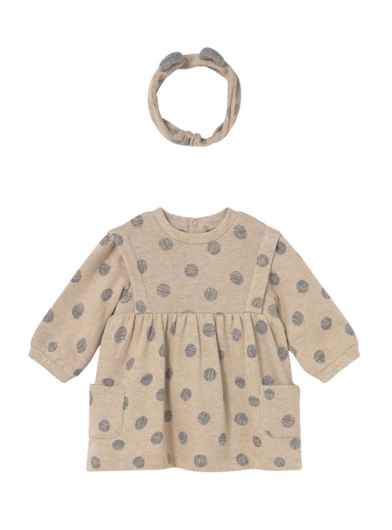 Vestido com tiara Mayoral de bolinhas bege para bebê.