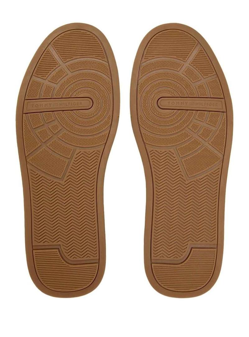 Sapatilhas Tommy Hilfiger. Modelo Court. Cor bege. Inspiração clássica, com design baseado nos modelos de tênis tradicionais. Exterior em mistura de couro revestido e interior de poliéster. Palmilha removível de borracha termoplástica. Sola de borracha resistente em cor natural. Painel verde no calcanhar. Logo Tommy Hilfiger no lateral.